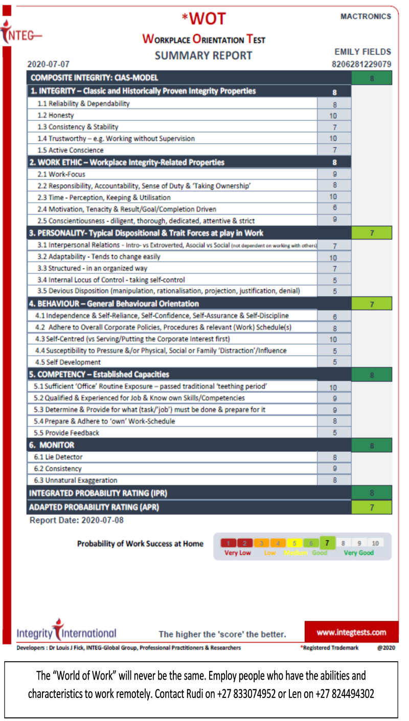 One of the first of it's kind we have launched the "Workplace Orientation Test" that does exactly that - testing people's overall ability to work successfully from home.
